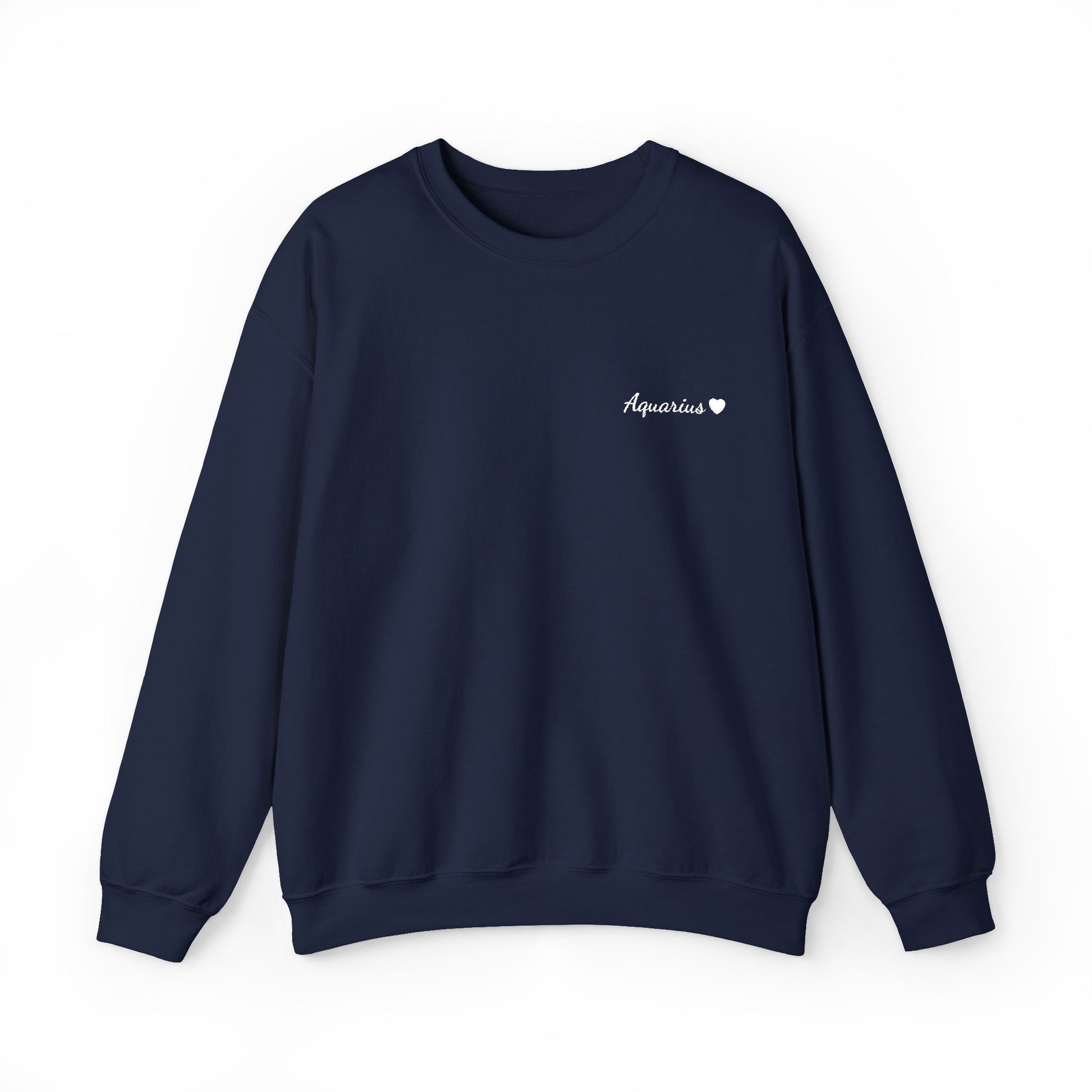 Aquarius Crewneck Sweatshirt — White Embroidery with Heart